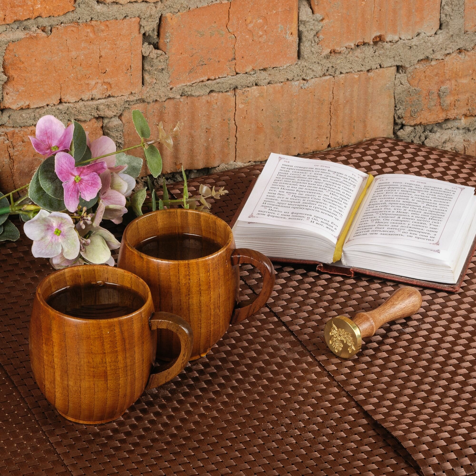 Купить Кружка чашка, набор — 2 шт, из натурального дерева с ручкой объем 250 мл для горячих и холодных напитков с доставкой по всей России.