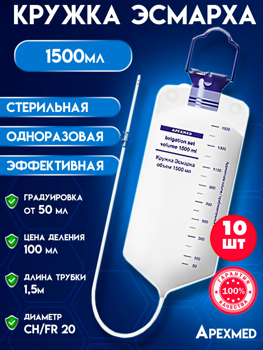Кружка Эсмарха клизма спринцовка стерильная одноразовая Apexmed 1500мл, 10 штук: сравнение цен, характеристики, фото, актуальное наличие и цены.