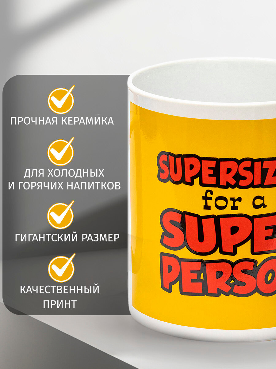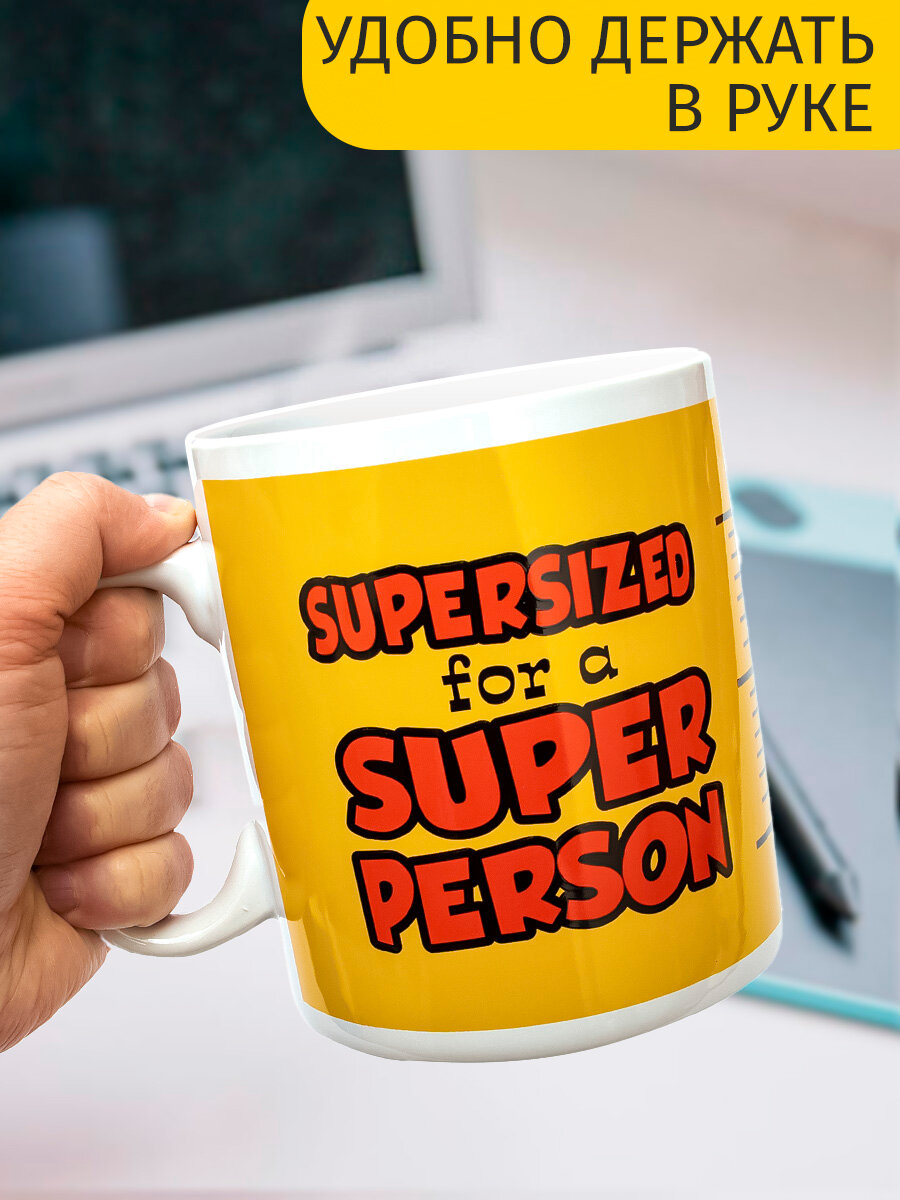 Кружка Гигант Для Супер-персоны «SUPERSIZED for a SUPER PERSON» 1000 мл мужская большая подарочная с приколом, надписью: сравнение цен, характеристики, фото, актуальное наличие и цены.