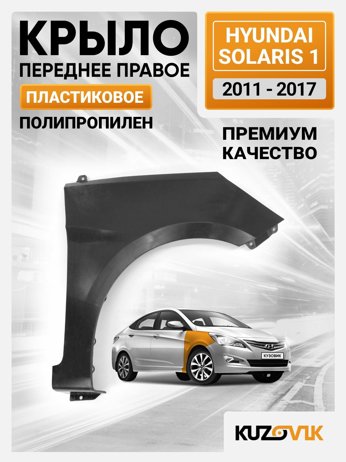 Купить Крыло переднее правое Hyundai Solaris 1 (2011-2017) пластиковое без отв. под повторитель с доставкой по всей России.