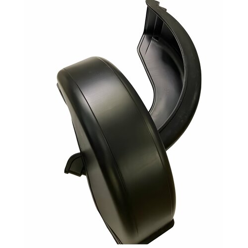 Крыло прицепа R13 изготовлено из прочного черного пластика, что обеспечивает его долговечность и устойчивость к воздействию агрессивных антигололедных реагентов и мороза. Благодаря этому, оно эффективно защищает кузов и другие узлы прицепа от абразивно-пескоструйного эффекта, чрезмерного налипания снега и образования наледи.