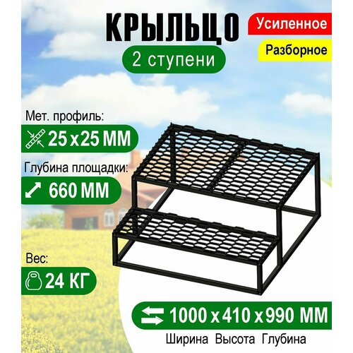 Крыльцо к дому 2 ступени с площадкой и решеткой. Разборное