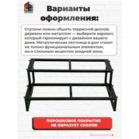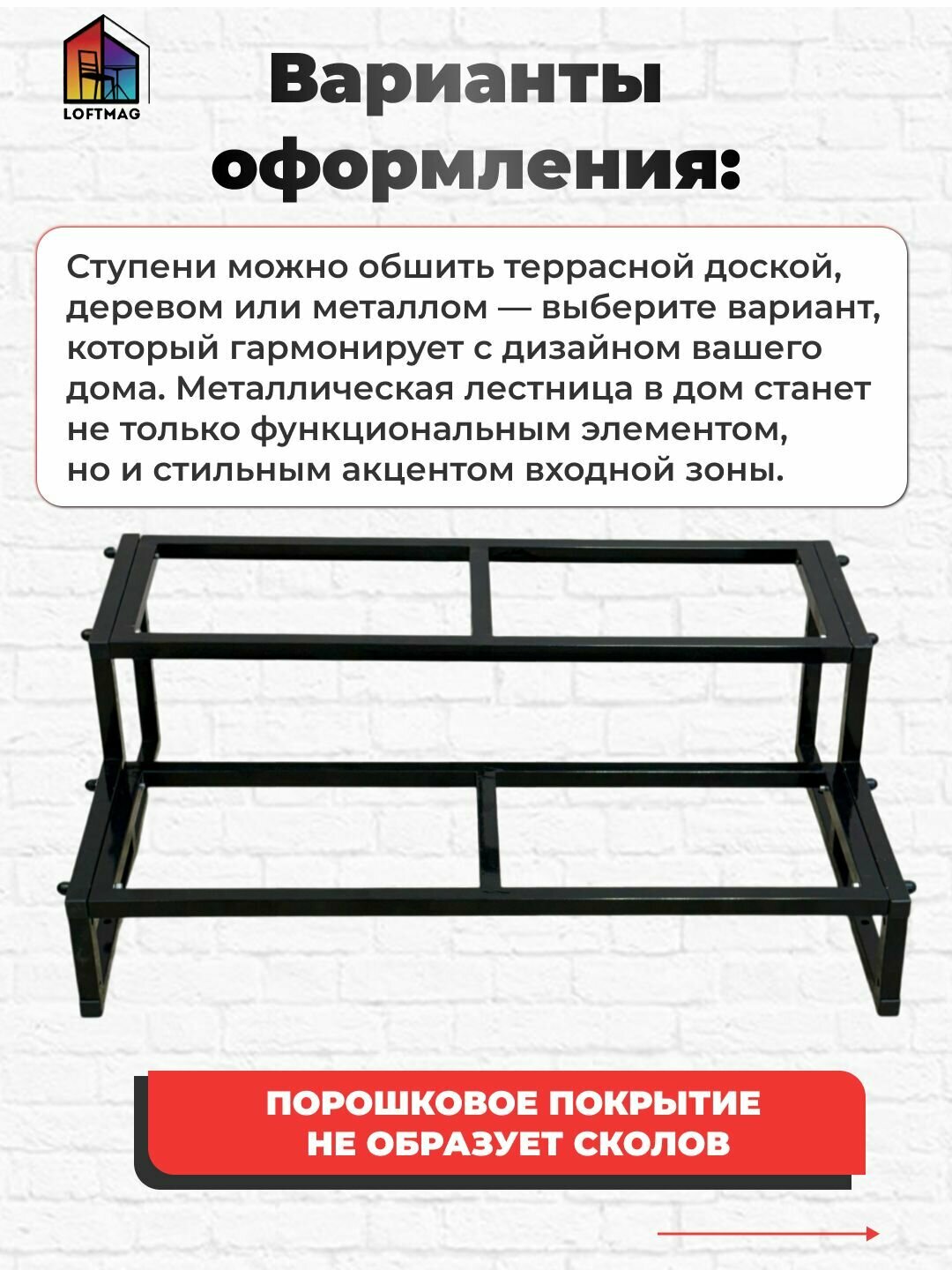 почему выбирают НАШ каркас? ✔ Прочность на годы – изготовлен из усиленного металла с антикоррозийным покрытием ✔ Идеальные ступени для крыльца – правильная геометрия (высота 17 см, глубина 30 см) ✔ Универсальность – подходит для обшивки деревом, ДПК или другими материалами ✔ Быстрый монтаж – все крепежи в комплекте, собирается за 10 минут! Превратите каркас В шедевр! Добавьте к вашему крыльцу к дому 2 ступени стильные перила: → Односторонние → Двухсторонние И получите законченный, безопасный и элегантный вход!