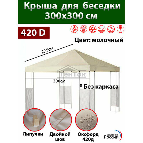 Крыша тент для беседки с окантовкой и пришивным клапаном 300х300 см Оксфорд 420д, молочная: сравнение цен, характеристики, фото, актуальное наличие и цены.