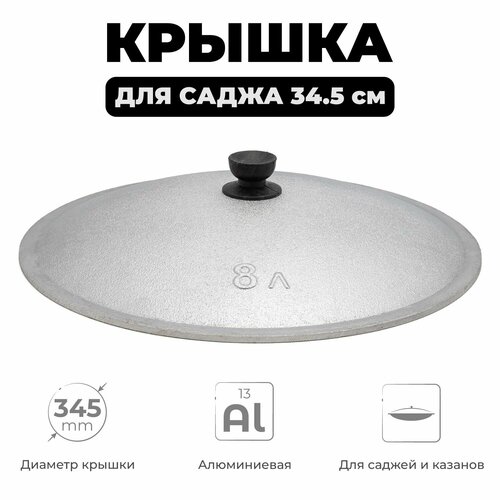 Крышка алюминиевая для саджа выполнена в классическом стиле. Она является необходимым атрибутом саджа, без нее не обходится приготовление практически ни одного блюда. Но иногда так случается, что крышка раскалывается по причине удара о кромку самого саджа либо при падении. Именно в таких ситуациях и необходимо иметь запасную крышку - она выручит вас в самый неподходящий момент.