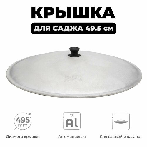 Крышка алюминиевая для саджа выполнена в классическом стиле. Она является необходимым атрибутом саджа, без нее не обходится приготовление практически ни одного блюда. Но иногда так случается, что крышка раскалывается по причине удара о кромку самого саджа либо при падении. Именно в таких ситуациях и необходимо иметь запасную крышку - она выручит вас в самый неподходящий момент.