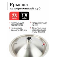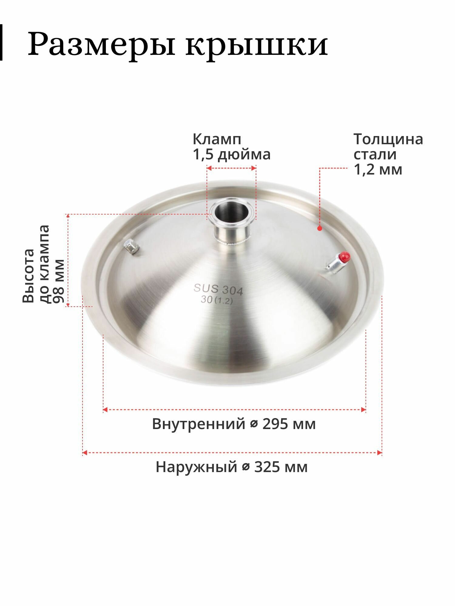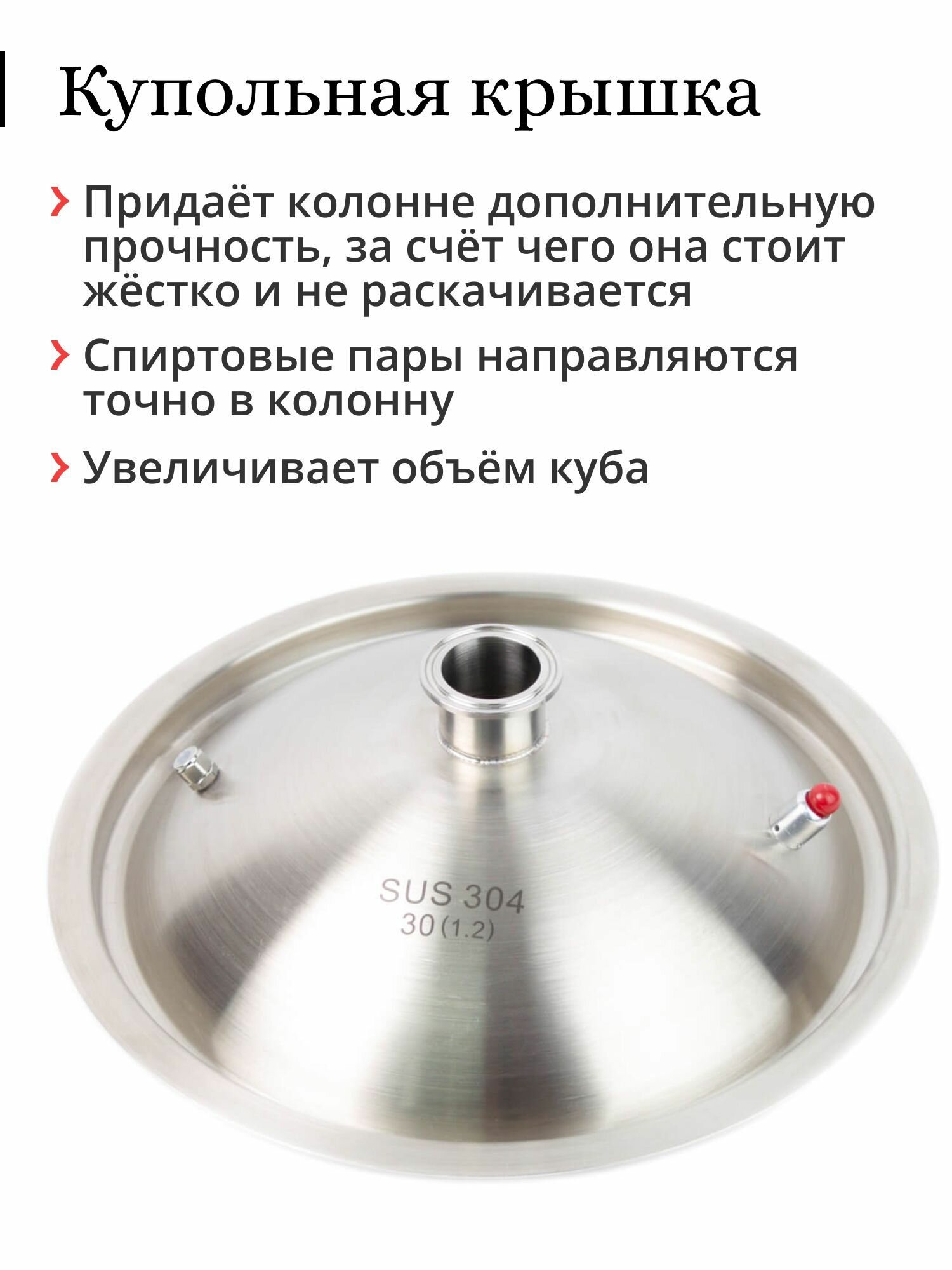 Крышка на перегонный куб наружный диаметр 325 мм (20 / 28 литров), купольная, под колонну 1,5 дюйма (Сталь 304): сравнение цен, характеристики, фото, актуальное наличие и цены.