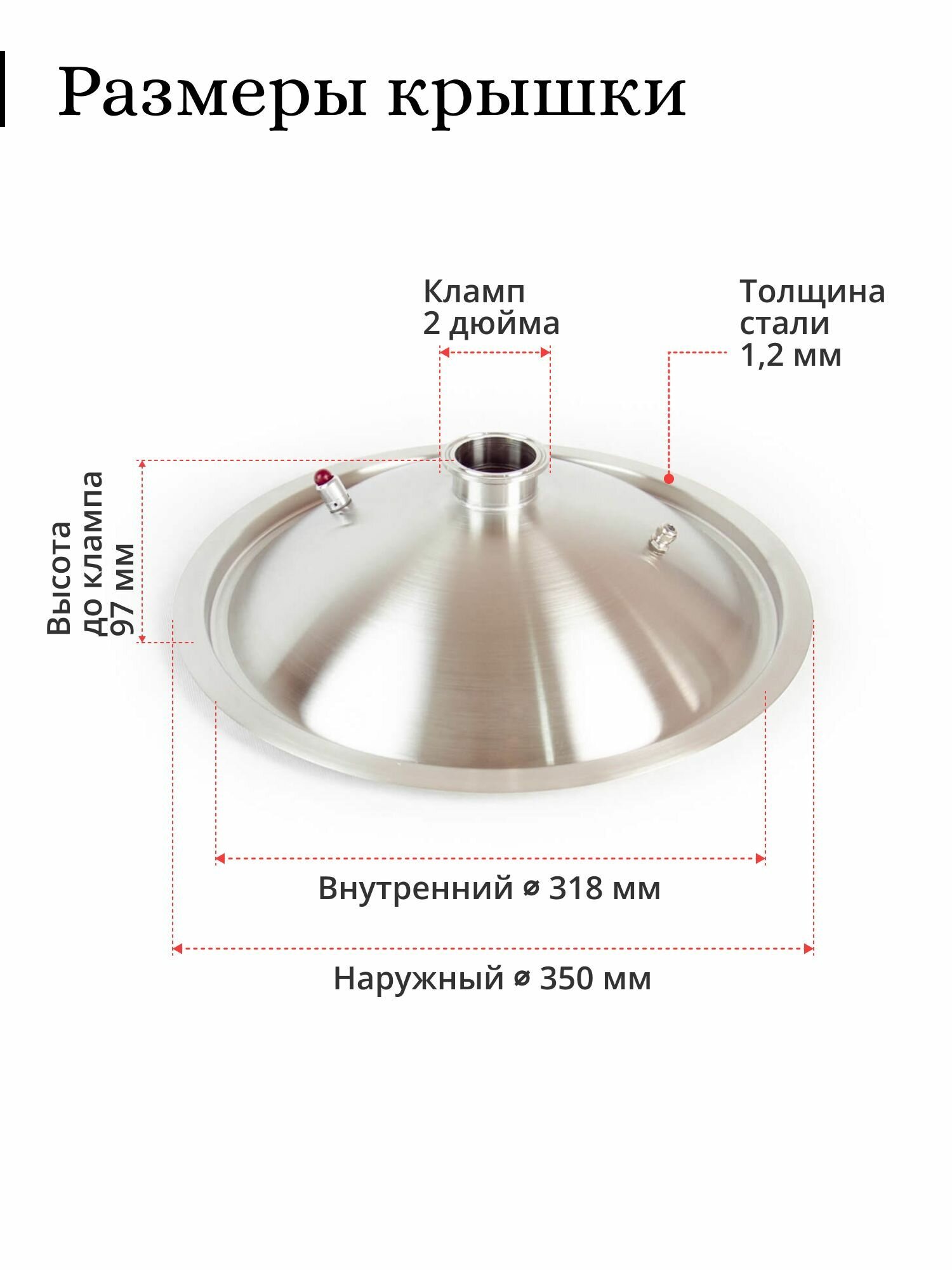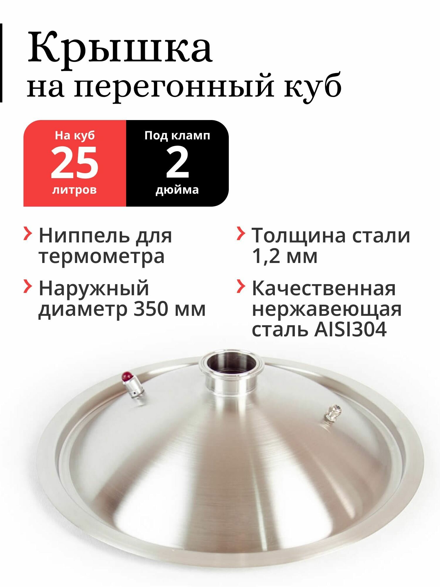 Крышка на перегонный куб наружный диаметр 350 мм (25 / 36 литров), купольная, под колонну 2 дюйма (Сталь 304): сравнение цен, характеристики, фото, актуальное наличие и цены.