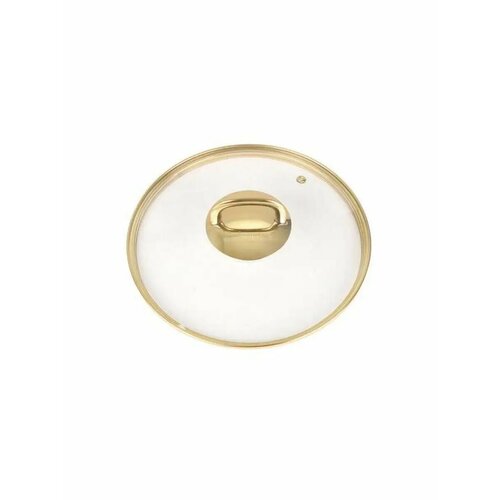 Термостойкая стеклянная крышка KUKMARA, 28см. с нержавеющим ободом и пароотводном цвета «под золото» изготовлена из современных, гигиеничных и экологичных материалов. Крышка комплектуется стильной металлической ручкой цвета золота, на которую нанесен логотип торговой марки. Между ручкой и крышкой располагается пластиковая шайба белого цвета с отверстиями для слива воды при мытье крышки. Специальное отверстие в крышке предназначено для выпуска пара, в результате снижается риск выкипания жидкости и получение ожогов при снятии крышки. Металлический обод на крышке надежно защищает стекло от растрескивания при случайном падении. Использовать крышку в духовом шкафу запрещено во избежание оплавления пластиковой шайбы. Мытье крышки в посудомоечной машине так же нежелательно из-за возможного изменения цвета обода и ручки. Размер: 28х9см.