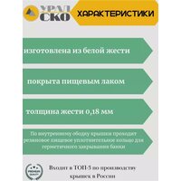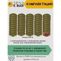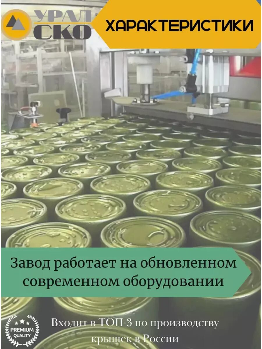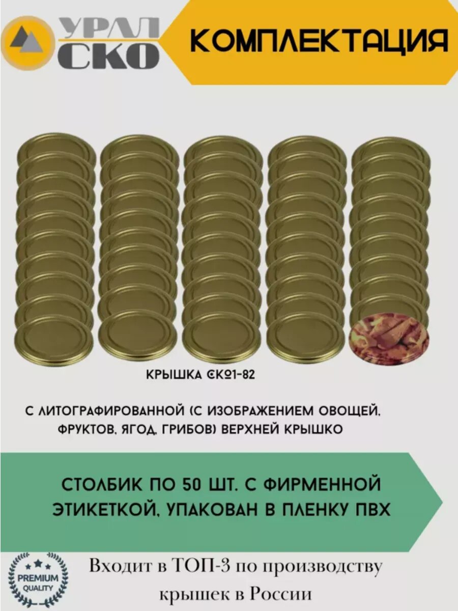 Крышка СКО1-82 , с литографированной (с изображением овощей, фруктов, ягод, грибов) верхней крышкой, изготовлена из белой жести, покрыта пищевым лаком. По внутреннему ободку крышки проходит резиновое пищевое уплотнительное кольцо для герметичного закрывания банки. Крышка полностью соответствует требованиям ГОСТ Р 51214-98 П.4.1.