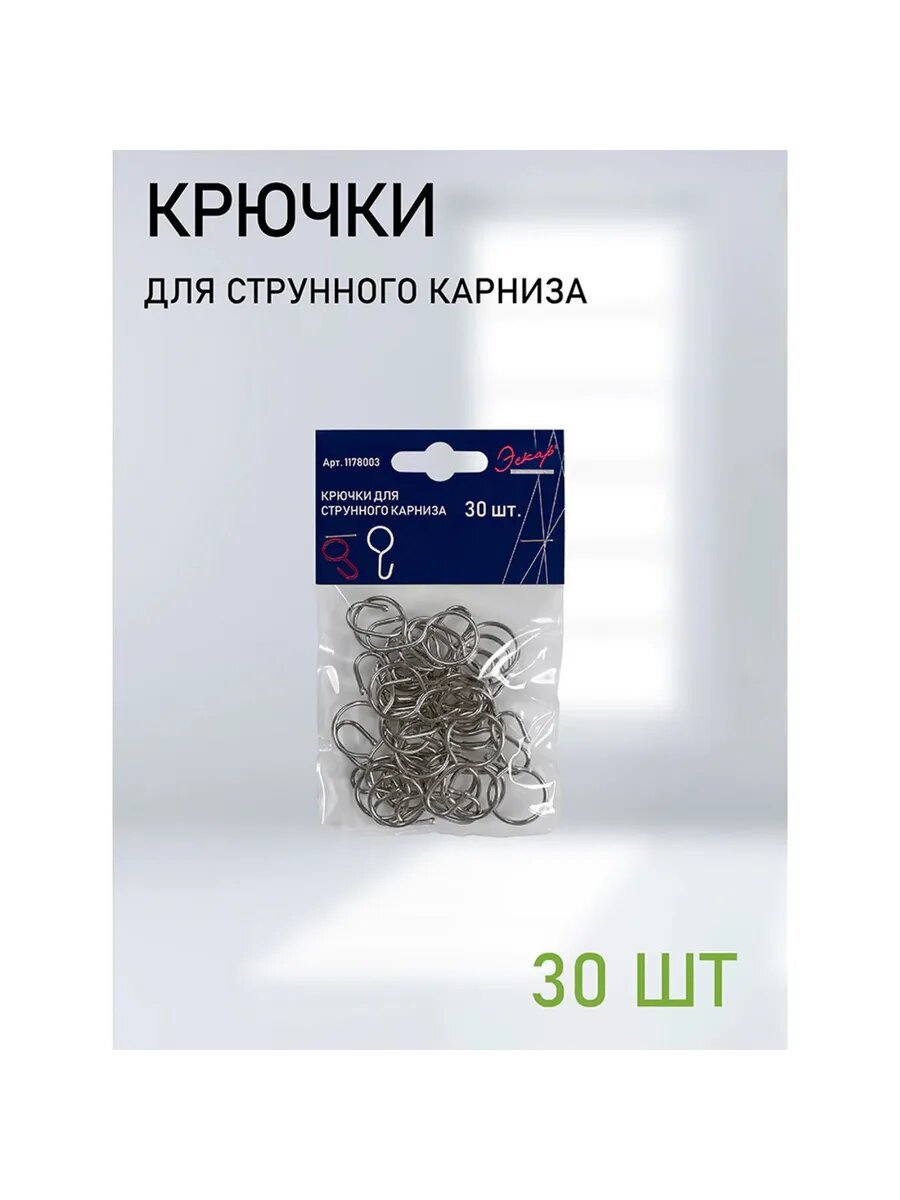 Крючки для струнного карниза «Эскар», 30 шт, 45х12 мм, металл, серебристый, арт.1178003: сравнение цен, характеристики, фото, актуальное наличие и цены.