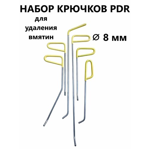 Описание: Набор включает 6 профессиональных крючков для PDR (беспокрасочного удаления вмятин), изготовленных из высокопрочной стали толщиной 8 мм. Каждый крючок имеет удобную желтую ручку для комфортной работы.