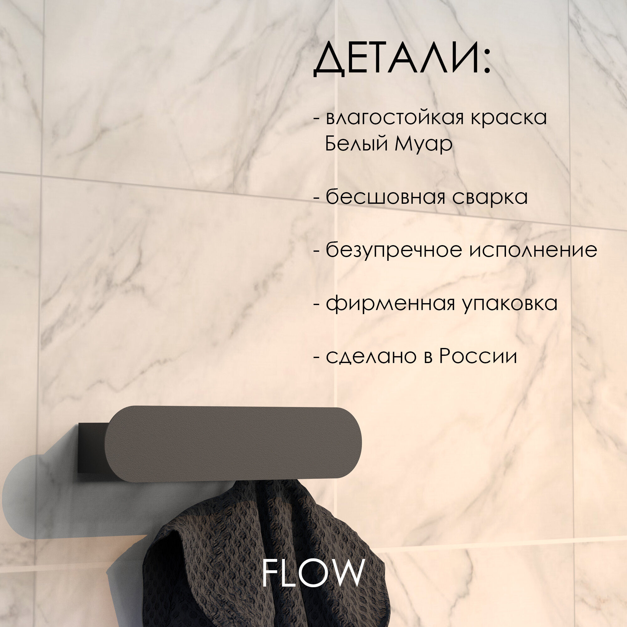 Крючки для полотенец в ванную, для халатов, для одежды в прихожую — незаменимый аксессуар из металла в минималистичном дизайне. Коллекция FLOW это стиль и роскошь вашего дома. Разработка отечественного производителя крючки на стену станет идеальным дополнением интерьера вашего дома в ванной, прихожей или гостиной. Благодаря продуманной до мелочей эргономике крючки для полотенец в ванную не занимают много пространства и не мешают даже в стесненных условиях. Настенные крючки в ванную комнату поместятся в небольшом пространстве.