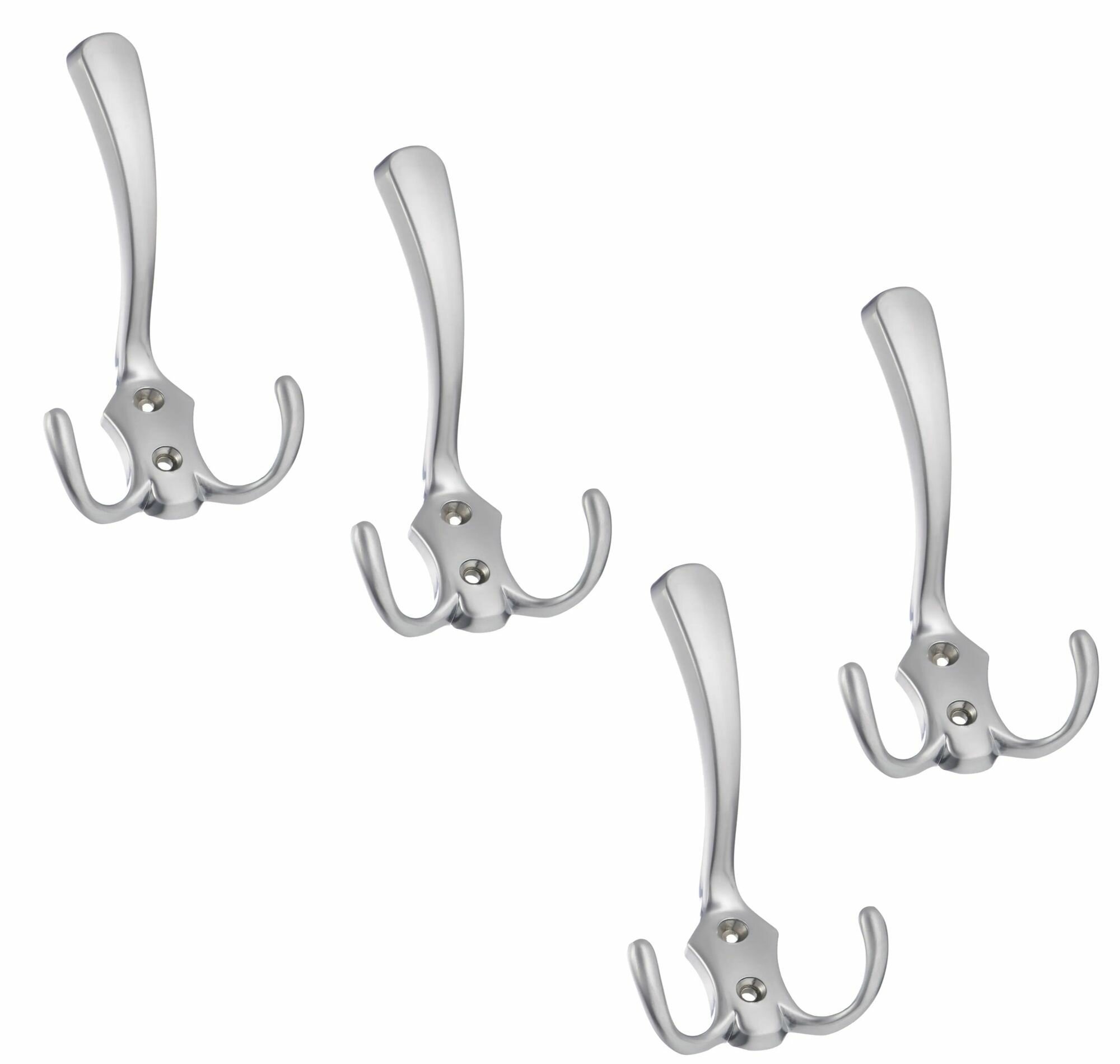 Купить Крючки настенные мебельные BRANTE трехрожковые матовый хром комплект 4 шт, крючки металлические для одежды, ключей, сумок, вещей, на стену, в прихожую с доставкой по всей России.