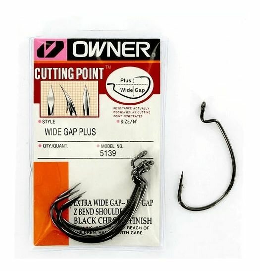 Крючки рыболовные Owner 5139 относятся к серии Wide Gap Plus, что означает наличие повышенного большого зазора. Это специально разработано для приманок, для прогиба которых не хватает изогнутости стандартных вариаций.