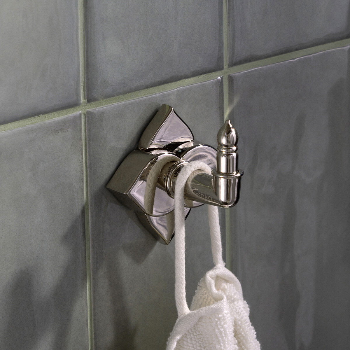Крючок для полотенец Grande из сплава цинка с никелированным покрытием в форме цветка. Максимальная нагрузка – 5 кг. Является частью коллекции Grande, которая представлена в Likemyhome в полном составе. Изящные предметы коллекции дополнят интерьер ванной комнаты в классическом стиле. Протирать с помощью мыльного раствора мягкой тряпкой. Не рекомендуется использовать абразивные и химически активные вещества для ухода за изделием. Не класть в морозильник, посудомоечную машину, микроволновую печь. Тип крепления: на шурупы Крепления в комплекте Состав металла: сплав цинка Скрытое крепление Металл имеет никелированное покрытие Увеличенный срок гарантии: 5 лет