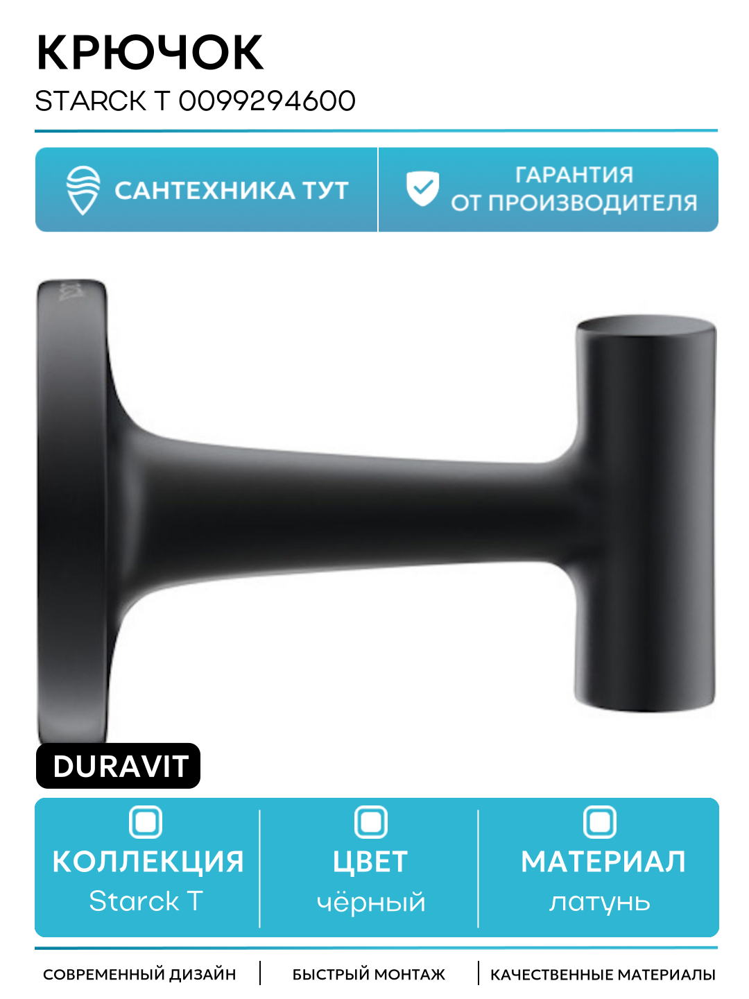 Купить Крючок Duravit Starck T 0099294600 Черный матовый, для ванной комнаты с доставкой по всей России. Крючок Duravit Starck T 0099294600 Черный матовый, для ванной комнаты: сравнение цен, характеристики, фото, актуальное наличие и цены.