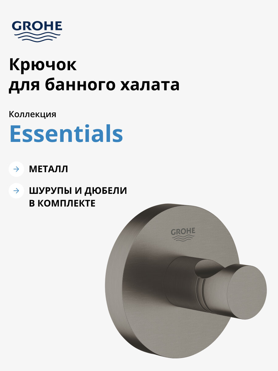 Купить Крючок для халата GROHE Essentials, тёмный графит матовый 40364AL1 с доставкой по всей России. Крючок для халата GROHE Essentials, тёмный графит матовый 40364AL1: сравнение цен, характеристики, фото, актуальное наличие и цены.