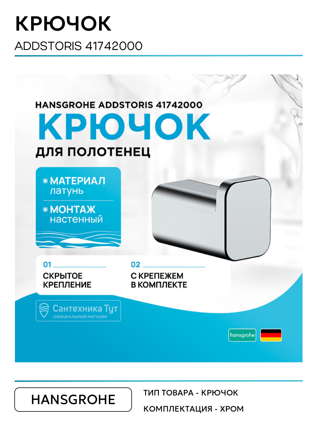 Купить Hansgrohe 41742000 AddStoris Крючок для полотенца, хром с доставкой по всей России. Hansgrohe 41742000 AddStoris Крючок для полотенца, хром: сравнение цен, характеристики, фото, актуальное наличие и цены.