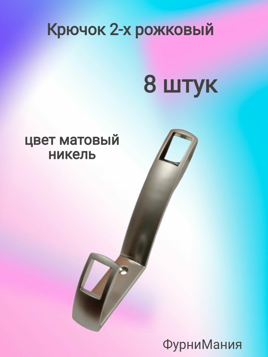 Крючок мебельный 2-х рожковый, матовый никель ( 8 шт. ): сравнение цен, характеристики, фото, актуальное наличие и цены.