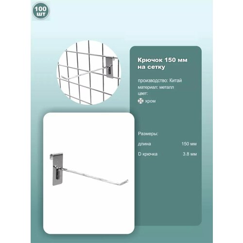 Купить Крючок на сетку, длина 150мм, хром, 100шт. с доставкой по всей России. Крючок на сетку, длина 150мм, хром, 100шт.: сравнение цен, характеристики, фото, актуальное наличие и цены.
