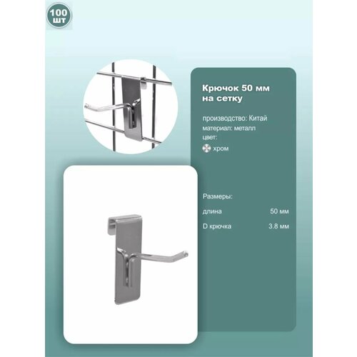 Купить Крючок на сетку, длина 50мм, хром, 100шт. с доставкой по всей России. Крючок на сетку, длина 50мм, хром, 100шт.: сравнение цен, характеристики, фото, актуальное наличие и цены.