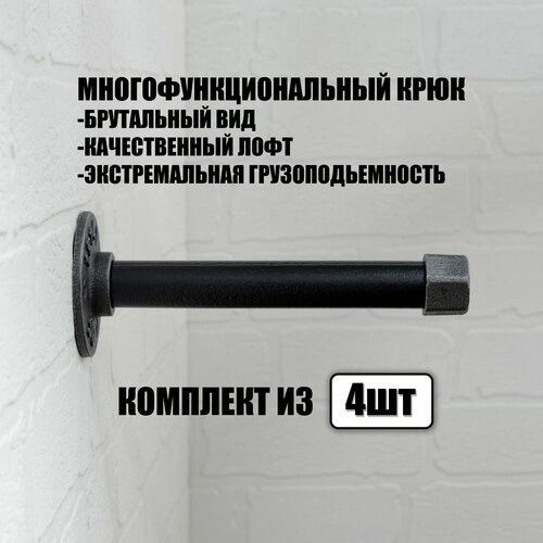 Крючок настенный металлический универсальный Лофт 4шт. черный, авторская работа, размер XL — 175мм: сравнение цен, характеристики, фото, актуальное наличие и цены.