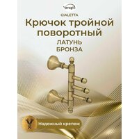 Крючок тройной VR. GIL-6435. BR серии GIALETTA — удобный аксессуар, который мы можете использовать не только для ванной комнаты, но и на кухне, и в корридоре, в кладовке. Компактный и функциональный, он идеально подойдет для небольшого пространства . Материал — латунь, покрытие цвета Бронза выполняется методом чернения металла и последующего его зачищения металлическими щетками, что создает красивый эффект состаренного металла.