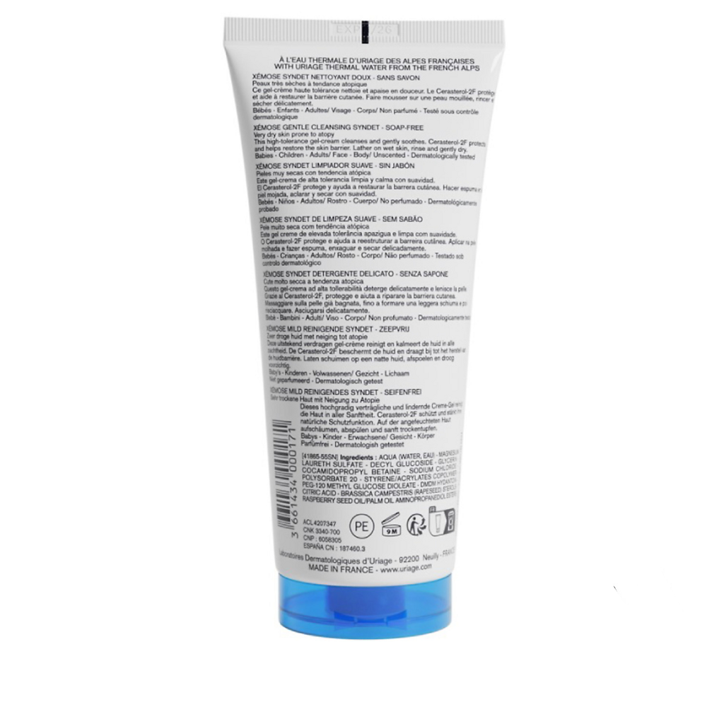 Мягкий очищающий пенящийся гель-крем Синдет подходит для ежедневной гигиены сухой, очень сухой, атопичной кожи. Мягко очищает, предупреждает нежелательные эффекты при умывании жёсткой водой. Успокаивает, увлажняет и восстанавливает. Для новорожденных, детей и взрослых. Лицо, тело. Активные компоненты: Термальная Вода Урьяж, Церастерол-2F, Сверхмягкие ПАВ. Без ароматизаторов - Без мыла - Физиологический рН - Гипоаллергенный - Некомедогенный. Формула с высокой переносимостью. Некоторое количество средства вспенить и нанести на влажную кожу. Смыть водой, аккуратно подсушить кожу. Для ежедневного применения.
