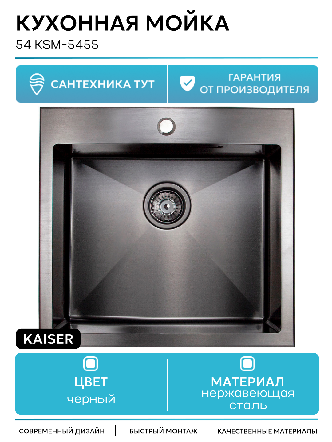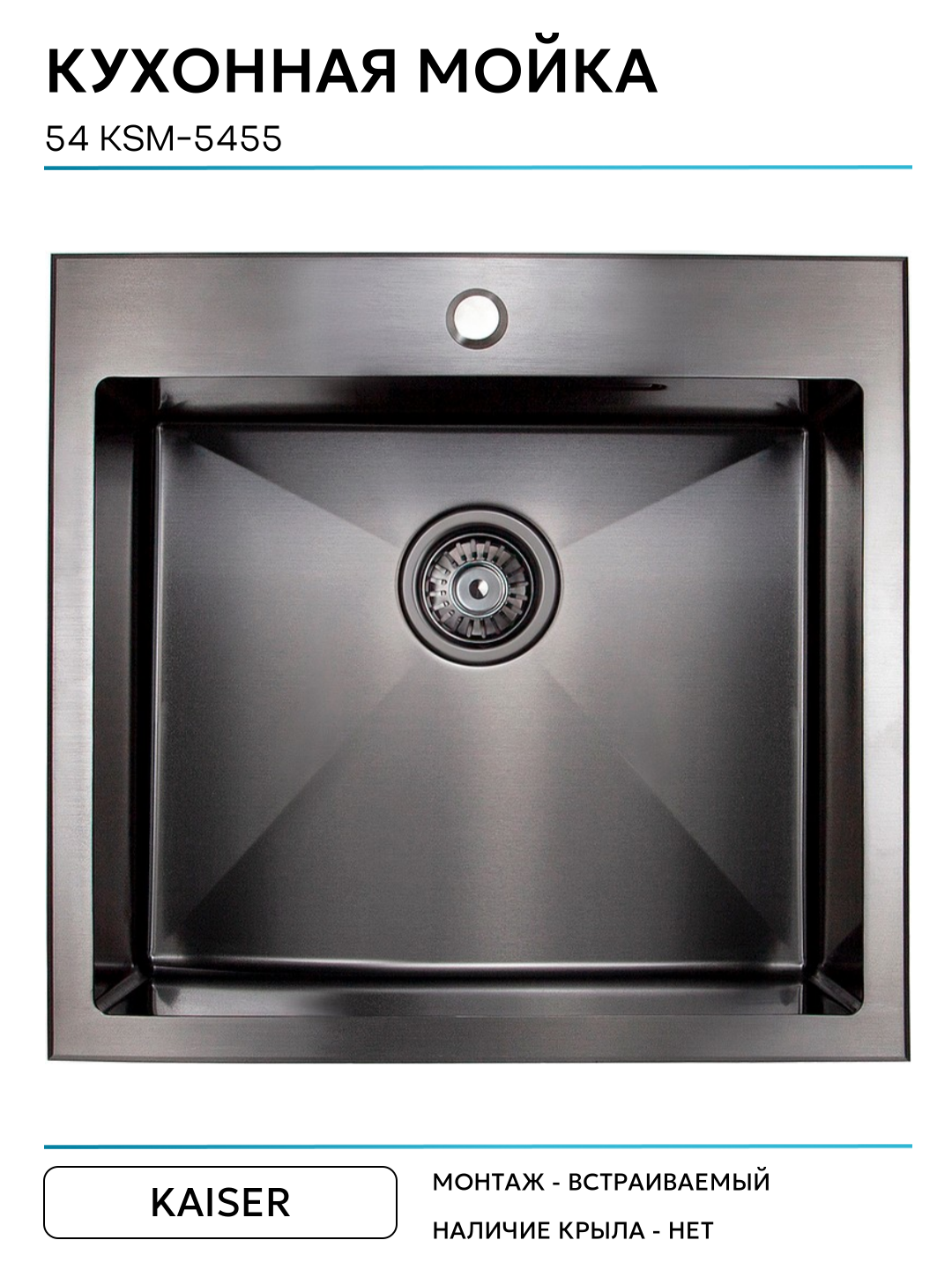 Купить Кухонная мойка Kaiser 54 KSM-5455 Вороненая сталь, современный стиль с доставкой по всей России.