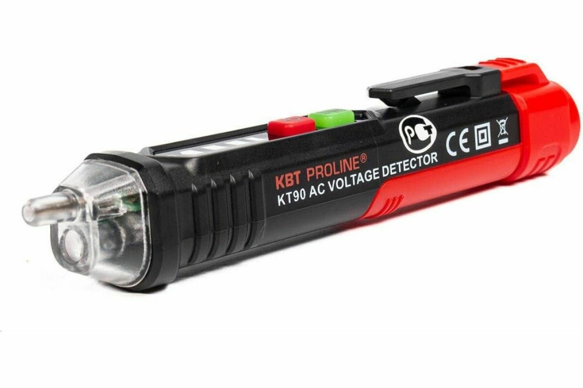Бесконтактный детектор напряжения КВТ КТ 90 PROLINE 87242 имеет возможность определения фазной и нулевой жилы.