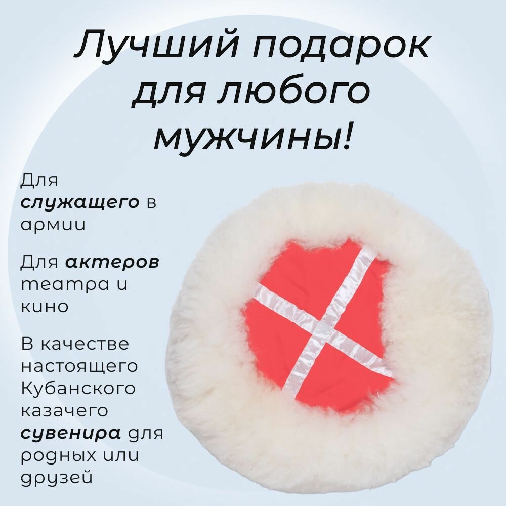 Кубанка белая с красным верхом изготовлена из натуральной овчины. Красивый и удобный головной убор, который согреет в зимнюю стужу и пригодиться как оригинальный тематический подарок.