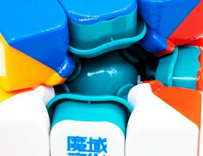 MoYu 3x3x3 WeiLong WR M v9 Magnetic core + Maglev UV Coated — скоростной кубик Рубика, который наверняка заставит вас влюбиться в спидкубинг с новой силой. Кубик выпустили с глянцевым покрытием, устойчивым к царапинам. Основной интерес, как и прежде, вызывает шарообразная замагниченная крестовина, которая дарит необычные ощущения при сборке. В отличие от предшественника, HuaMeng YS3M, в девятую версия Вейлонга установили ответные магниты не только в уголках, но и в ножках реберных элементов. И это в дополнение к стандартным магнитам и системе МагЛев. Всего в кубике 88 магнитов, а масса головоломки 77 граммов. С самой расслабленной настройкой сжатия пружин грани поворачиваются на 180 градусов при минимальном усилии, при этом обладая немного желейным кручением. Кому-то такое кручение приходится по душе, но если вы не фанат, вам всегда доступно множество настроек. После настройки и смазки крутить головоломку будет в разы приятнее, если вы привыкли к сопротивлению граней, а вращение станет более контролируемым. В комплекте, как мы уже привыкли, нам предлагают запасную гайку, отвертку, пластиковый бокс и инструменты для настройки. Основное отличие нового кубика заключается все же в слегка модернизированной магнетизации, а также в ощущениях от кручения. Этот кубик просто приятно крутить в руках! Пожалуй, из всех выпущенных за последние 6-8 месяцев кубиков MoYu, эта модель удалась больше всего. Но судить, конечно же, вам. МоЮ 3х3х3 ВейЛонг ВР М в9 Магнетик кор + Маглев ЮВ Коатед — прекрасный кубик для профессиональных спидкуберов и тех, кто стремится ими стать. Если же самая навороченная версия вас не привлекает, приглядитесь к MoYu 3x3x3 WeiLong WR M v9 Maglev и MoYu 3x3x3 WeiLong WR M v9.