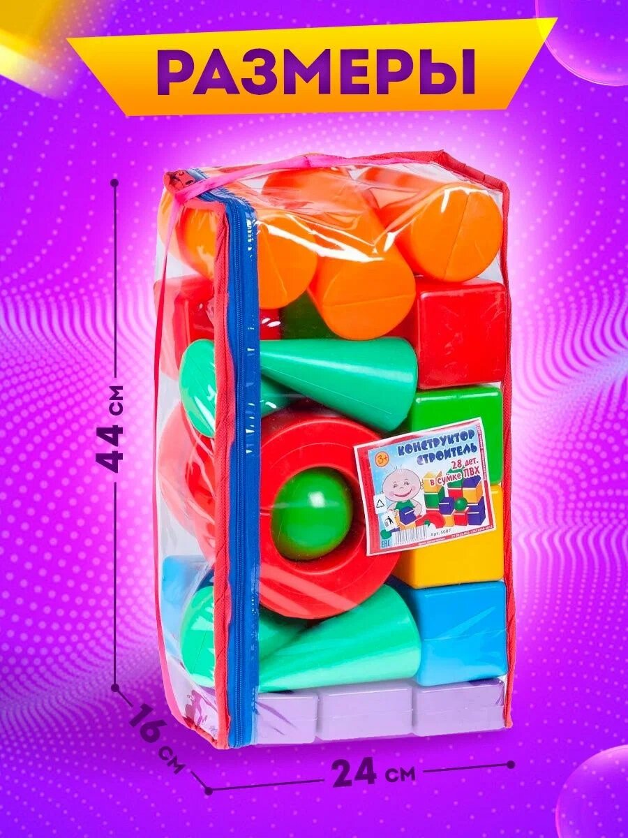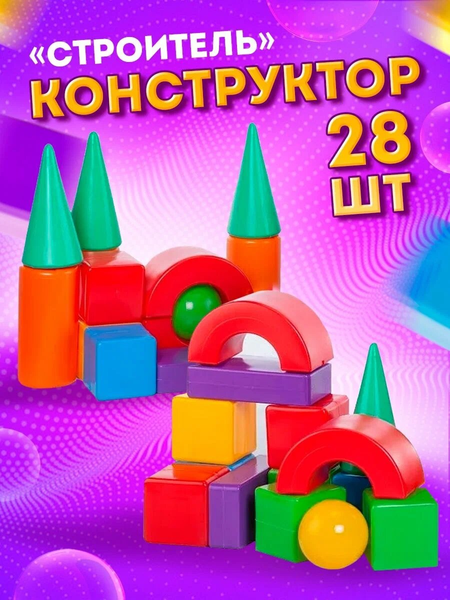 Купить Кубики детские Юг-Пласт «Строитель» развивающие пластмассовые 28 шт, (разноцветные) 5007 с доставкой по всей России.