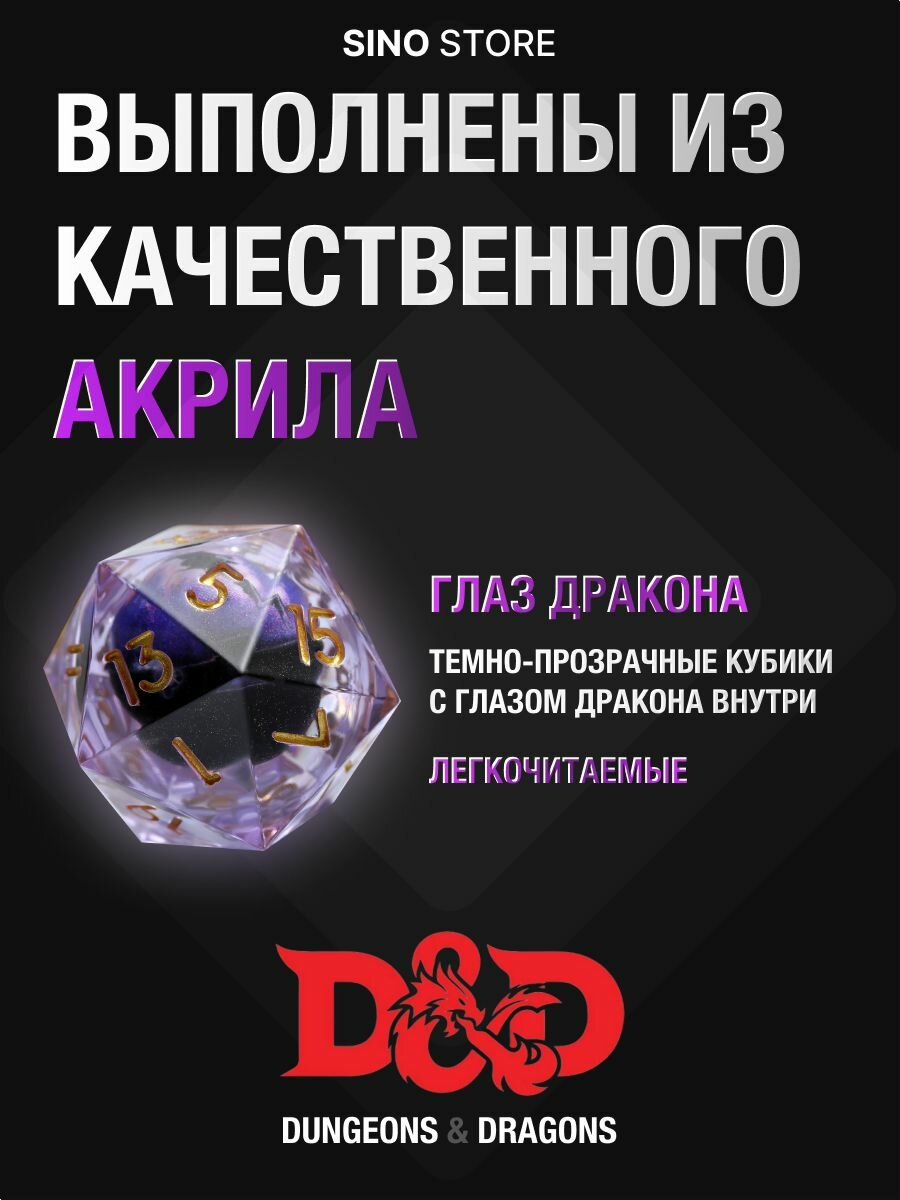 Dungeons & dragons - легендарная настольная ролевая игра в жанре фэнтези, разработанная Гэри Гайгэксом и Дэйвом Арнесоном. Впервые была издана в 1974 году. Игра не только поможет провести досуг, но и будет способствовать развитию воображения, логики и памяти. Дайсы днд как для игры вдвоем, так и в компании друзей. Максимальное количество игроков - 6. Кости DND зеркальные с Глазом дракона внутри в металлическом кейсе - это многогранные фигуры с пронумерованными сторонами, используемые для генерации случайных чисел в таких настольных играх как d&d подземелье драконов, pathfinder, элементаль, приключения в средиземье и многие другие. Важный фактор, определяемый хороший кубик в том, что кубики сделаны из качественного безопасного и прочного акрила, который ощутим в руках и хорошо катятся по столу. Игровые кубы для днд имеют хорошую гравировку со всех сторон и четкость цифр, что является важным фактором при броске. Стандартный классический набор включает в себя 7 кубов: d4 (четырехгранный маленький куб в форме пирамидки); d6 (шестигранный куб, который используется в самых разных играх, например монополия); d8 (восьмигранный); d10 (десятигранный, куб с 10 вариантами броска, внешне похож на юлу, по-другому процентник %); d12 (двенадцатигранный); d20 (двадцатигранный, самый часто используемый куб в игре) Дайсы днд (с английского dnd dice) упакованы в подарочный бархатный мешок, удобно играть в настольные игры для всей семьи, а также брать в гости для игр в настолки для взрослой компании, или подростков 11-12 лет. Приобретайте красивые и легкие каунтеры для ролевых игр, которые долгие годы будут оставаться частью ваших игровых сессии. Радуйте себя и близких другими замечательными товарами магазина Sino store.