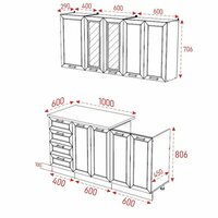 шкаф навесной (ШхГхВ): 40х29х70.6 см; шкаф навесной (ШхГхВ): 60х29х70.6 см - 2 шт; шкаф напольный (ШхГхВ): 100х60х80.6 см; шкаф напольный под раковину (ШхГхВ): 60х45х80.6 см
