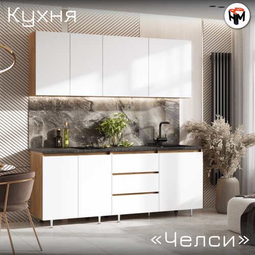 Кухня Челси 2,0м Компановка №2 произведена в России и относится к стилю лофт, что делает ее отличным выбором для современных и стильных интерьеров.