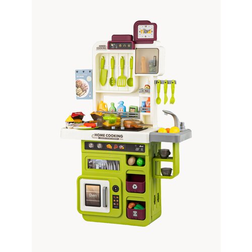 Кухня игрушка детская с реалистичными функциями: кран с настоящей водой, детская плита кухонная со светом, звуками жарки и кипения, вытяжка с мелодиями, яйцеварка, которая «варит» яйца, и даже холодный пар для имитации настоящей готовки.