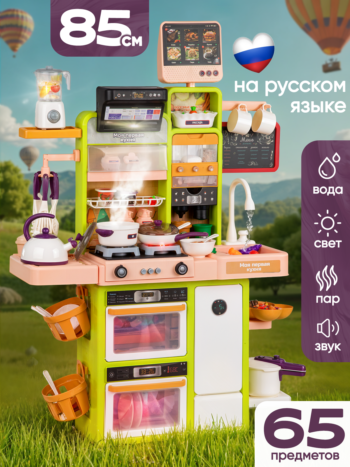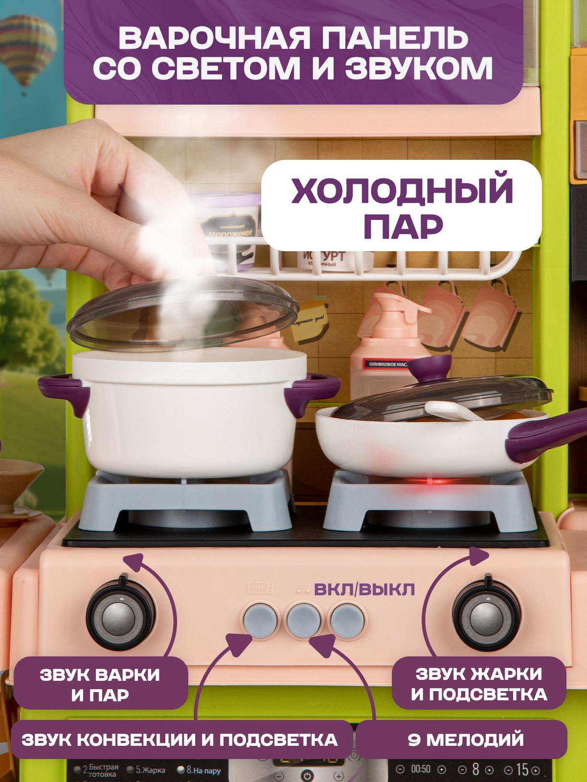 Кухня детская игровая со светом, паром, водой и звуком — это интерактивная игрушечная кухня для детей от 3 лет, где всё работает и выглядит как у взрослых.