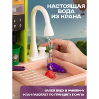 • Кухня для девочек с водой: кран-помпа с настоящей водой, в раковину можно налить воду и мыть овощи или посуду.