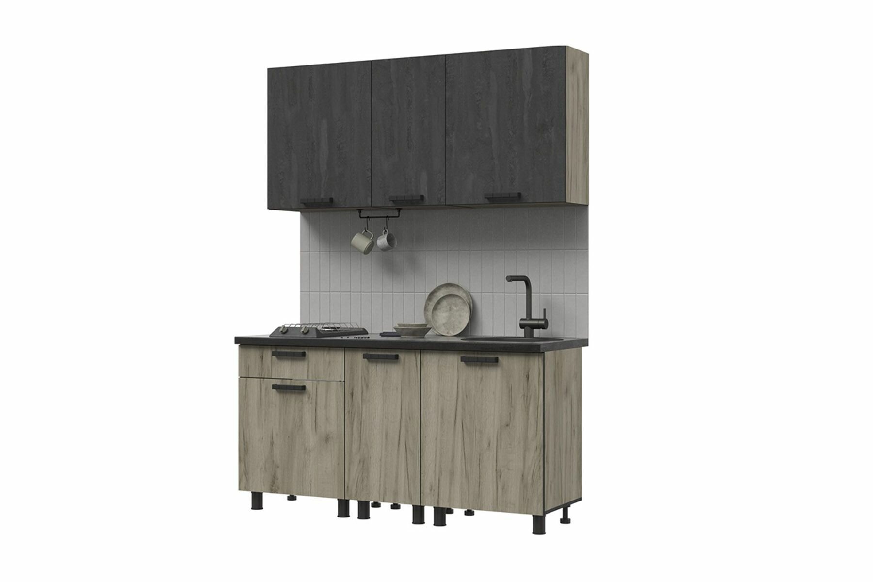 Обратите внимание, что фартук, раковина, смеситель, посудосушитель, бытовая техника и подсветка в комплект не входят.