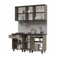 В комплект кухни Эдинбург 1.6 входят верхние и нижние модули, а также столешница. Верхние модули включают два шкафа размером 600x716x318 мм и два шкафа размером 400x716x318 мм. Нижние модули включают шкаф с ящиком размером 600x854x458 мм, два шкафа размером 600x854x458 мм и шкаф размером 400x854x458 мм.