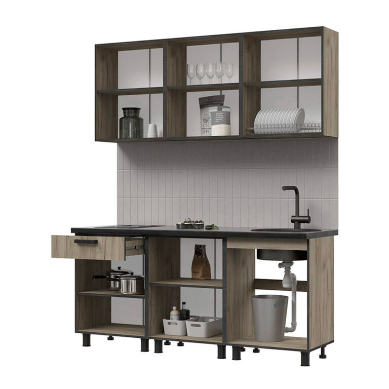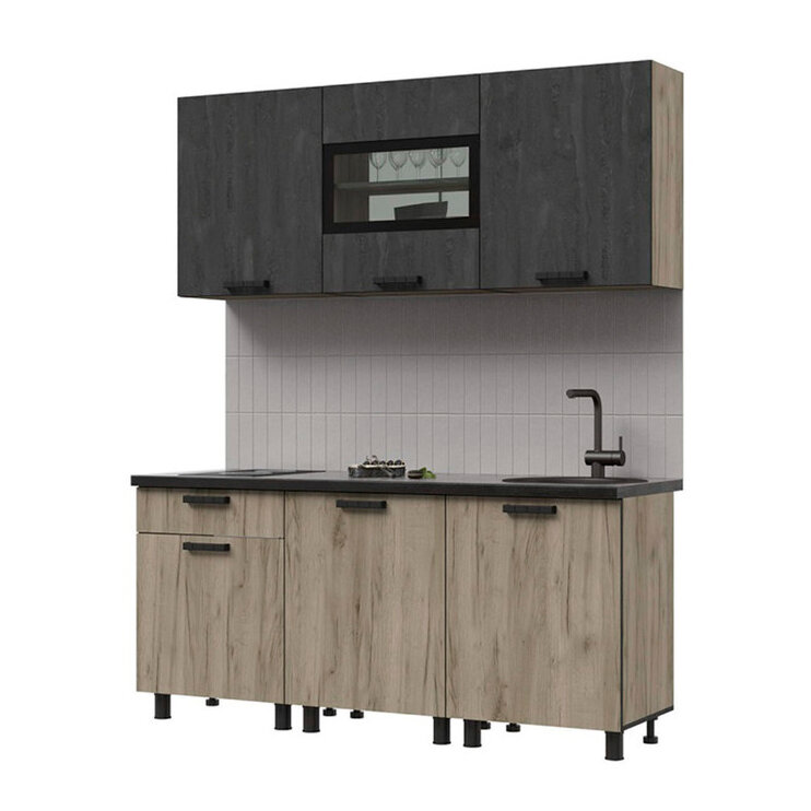 Кухня прямая готовая Эдинбург 1.8 Фасад железный камень и Корпус ДУБ крафт серый: сравнение цен, характеристики, фото, актуальное наличие и цены.
