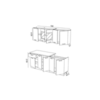 В комплект мебели для кухни входят: столешница, шкаф напольный под мойку, шкаф напольный с полками, шкаф настенный, шкаф-витрина настенный.