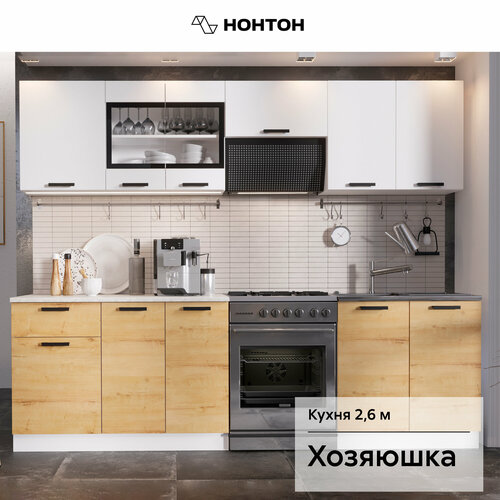 Купить Кухонный гарнитур Нонтон Хозяюшка 2.6 м белый гладкий / дуб вотан с доставкой по всей России. Кухонный гарнитур Нонтон Хозяюшка 2.6 м белый гладкий / дуб вотан: сравнение цен, характеристики, фото, актуальное наличие и цены.