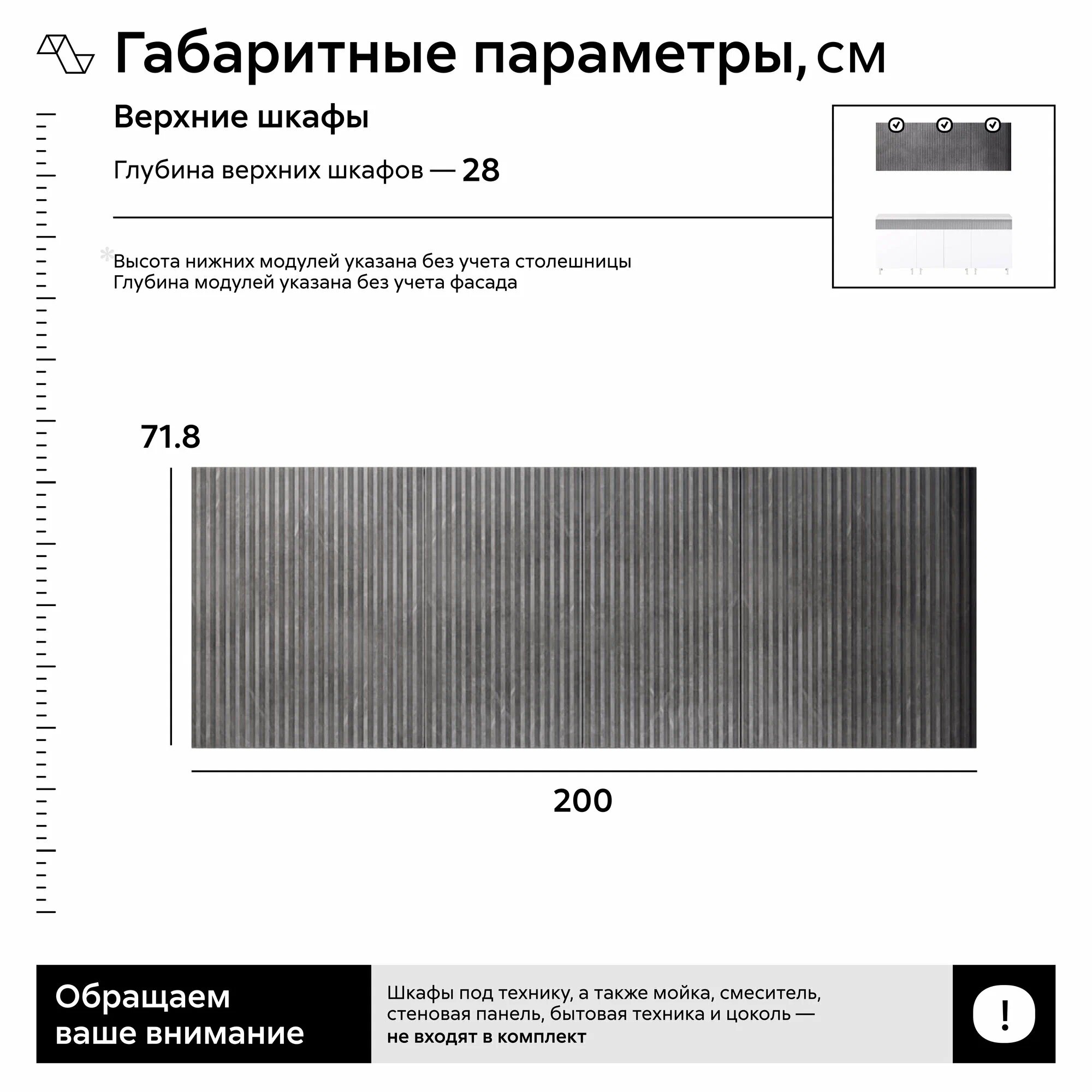 ✅Столешница гарнитура имеет размеры 2000х600х26 мм, что позволяет разместить на ней все необходимые кухонные принадлежности.