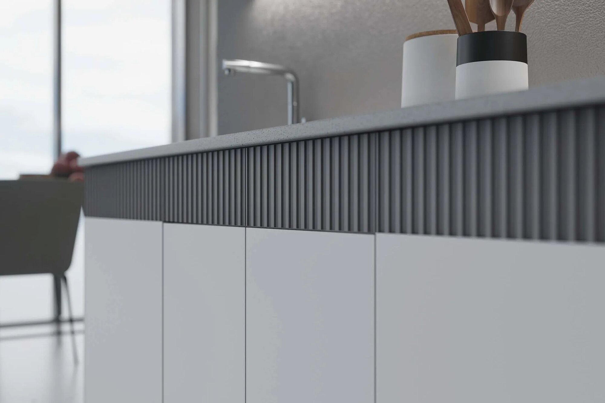 Купить Кухня Эталон NEW 2.0 Белый снег софт/графит софт, фрезеровка волна с доставкой по всей России. Кухня Эталон NEW 2.0 Белый снег софт/графит софт, фрезеровка волна: сравнение цен, характеристики, фото, актуальное наличие и цены.