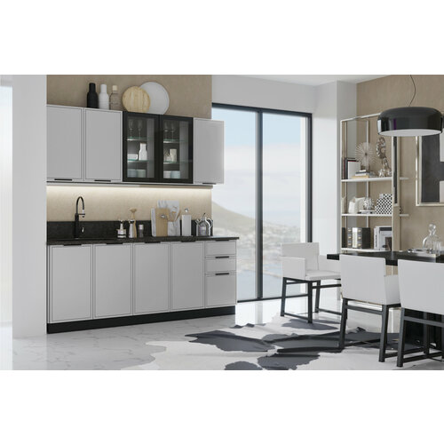 Кухня Николь 2,0м Компановка №1 (Холст белый/Холст вулканический) (Кастилло темный) (Миф): сравнение цен, характеристики, фото, актуальное наличие и цены.