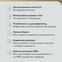 Каждый модуль представлен с учетом долговечности материалов: ЛДСП обладает устойчивостью к влаге, поэтому каждая деталь будет служить вам долгое время! Подходящие цоколи в цвет корпуса прекрасно дополнят общий внешний вид кухни.
