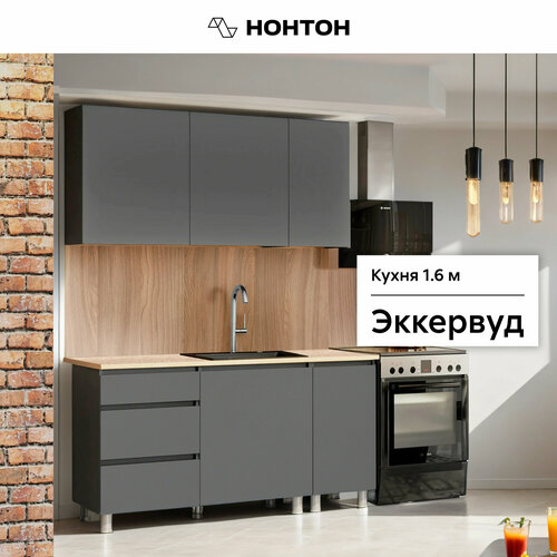 Купить Кухонный гарнитур прямой Нонтон Эккервуд, 160 см, графит серый с доставкой по всей России. Кухонный гарнитур прямой Нонтон Эккервуд, 160 см, графит серый: сравнение цен, характеристики, фото, актуальное наличие и цены.